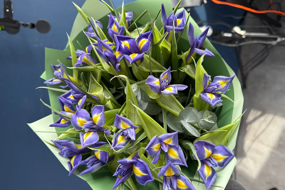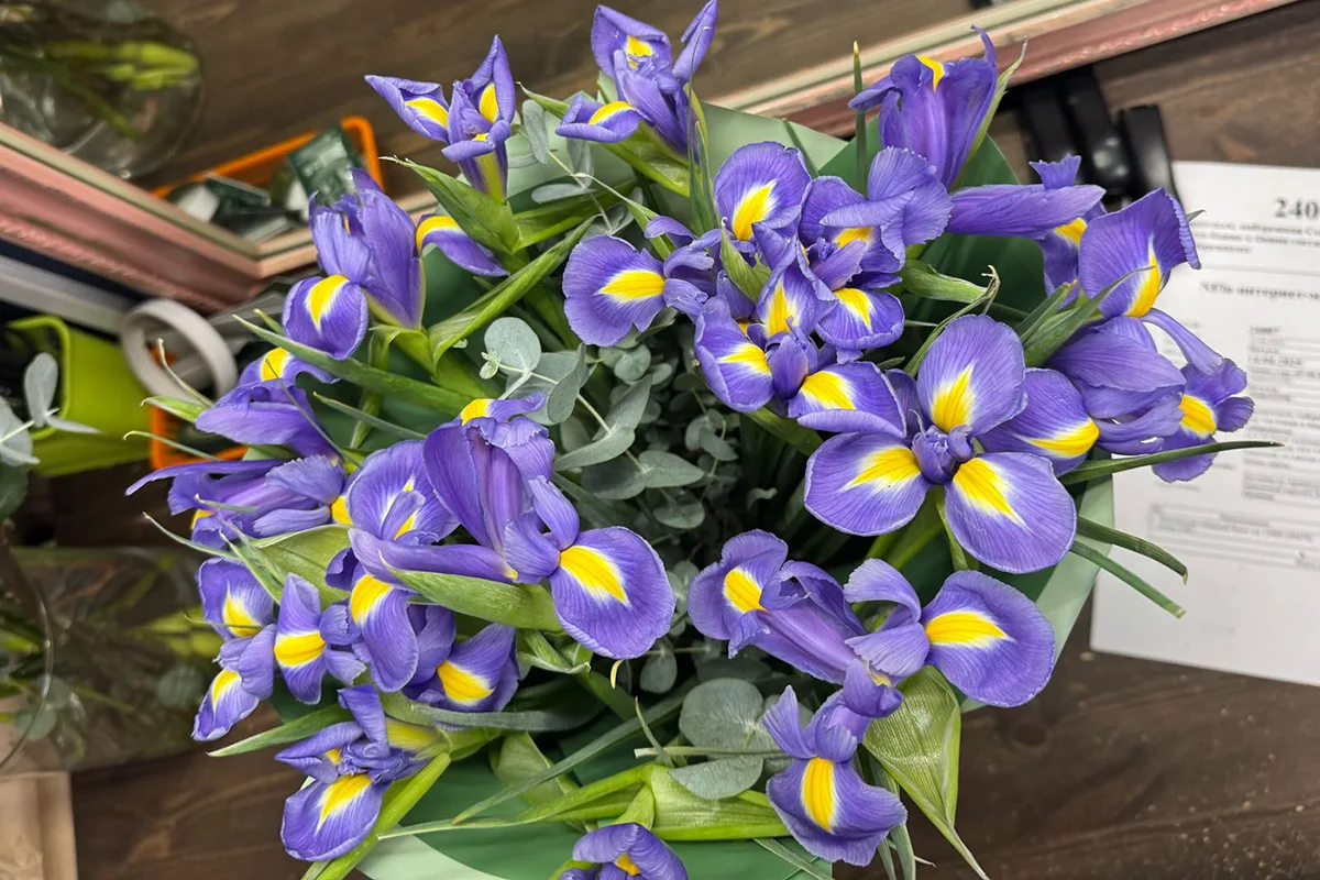 Срочно сами идем к получателю, с собой берем 3 ириса, свежих, закрытых полностью. Чтобы на месте объяснить и показать, что такое свежий ирис и как он раскрывается.