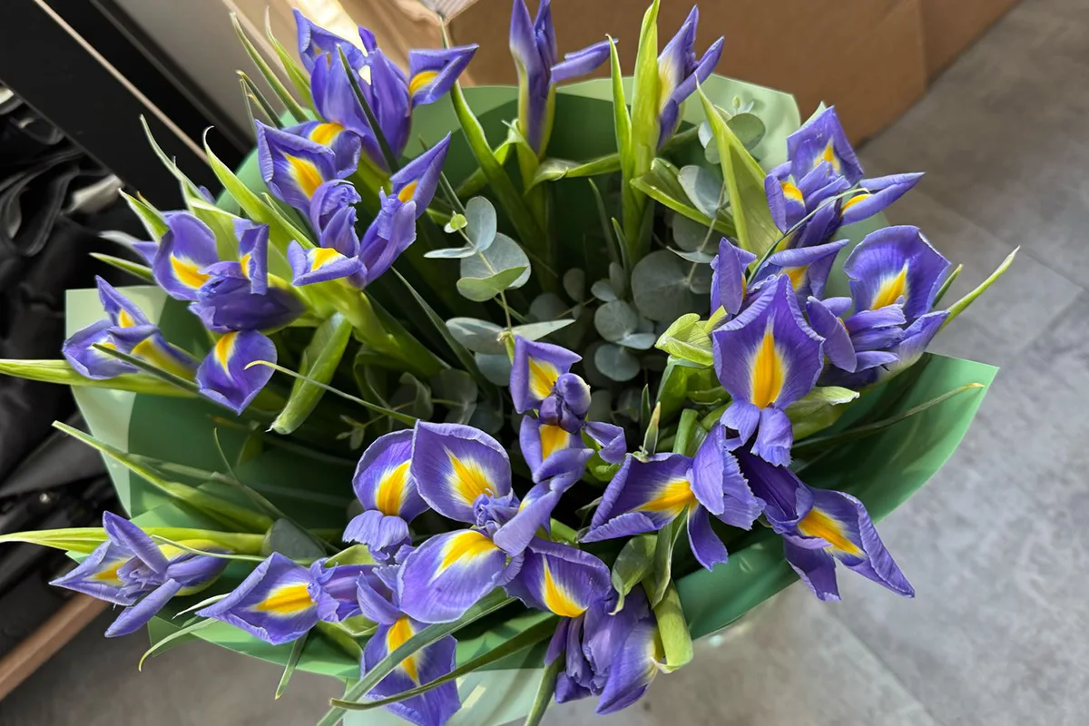 Забрать мы не против, букет не понравился – меняем без разговоров, у нас такие правила. Но сильно задевает уверенность получателя в том, что ирисы завядшие. А это принципиальный момент, ведь они свежие! Надеемся донести это знание и до получателя.