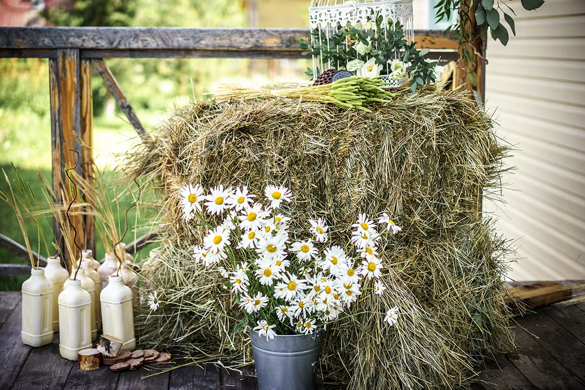 Комментарий: все должно быть просто, природные материалы, сено, дерево, сухоцветы, полевые цветы!