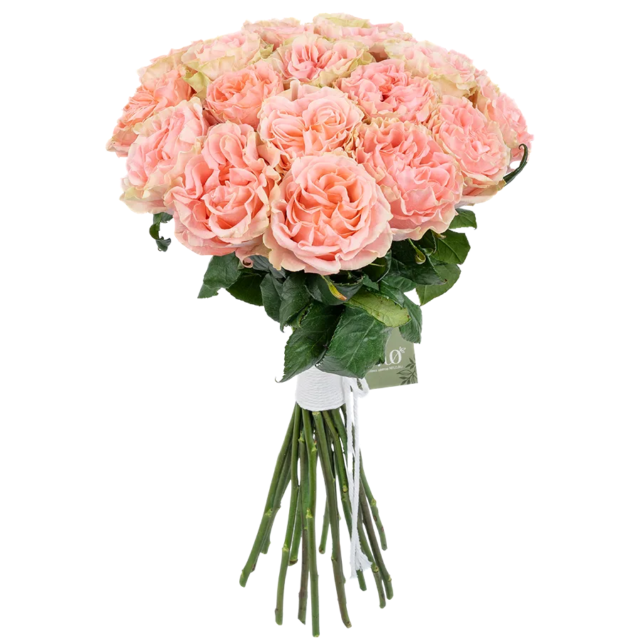 Букет из 19 кремово-розовых роз Хэппинк (Rose Happink) 60 см, перевязанный натуральной веревкой