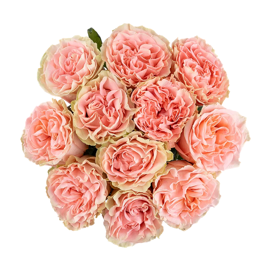 Букет из 11 кремово-розовых роз Хэппинк (Rose Happink) 60 см, перевязанный натуральной веревкой